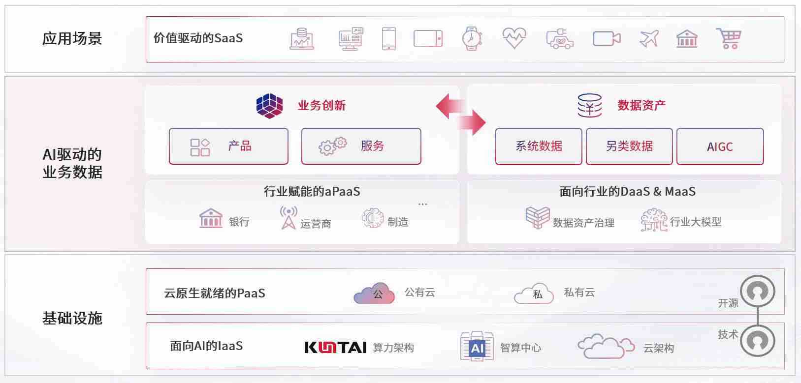 数字时代,,,,围绕企业数字化转型的关键要素,,z6尊龙数码开创性的提出数云融合战略和技术体系框架,,,着力在云原生、、、、数字原生、、AI原生和信创产业上架构产品和服务能力,,,为处在不同数字化转型阶段的快消零售、、汽车、、、金融、、、医疗、、、政企、、、、教育、、运营商等行业客户提供泛在的敏捷IT能力和融合的数据驱动能力,,构建跨界融合创新的数字业务场景和新业务模式,,,助力企业级客户建立面向未来的核心能力和竞争优势,,,,全面推动社会的数字化、、、智能化转型升级。。